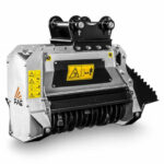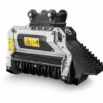 The BL1/EX forestry mulcher for 4-7.5 ton excavators can shred light vegetation, shrubs and trees up to 5 inches in diameter. The Bite Limiter technology on this head is ideal for high productivity in managing vegetation, with reliably efficient shredding. The head is available in the VT version and in the no-drain fixed gear motor version. The BL1/EX can be equipped with BL/MINI blades and C/3/MINI teeth.