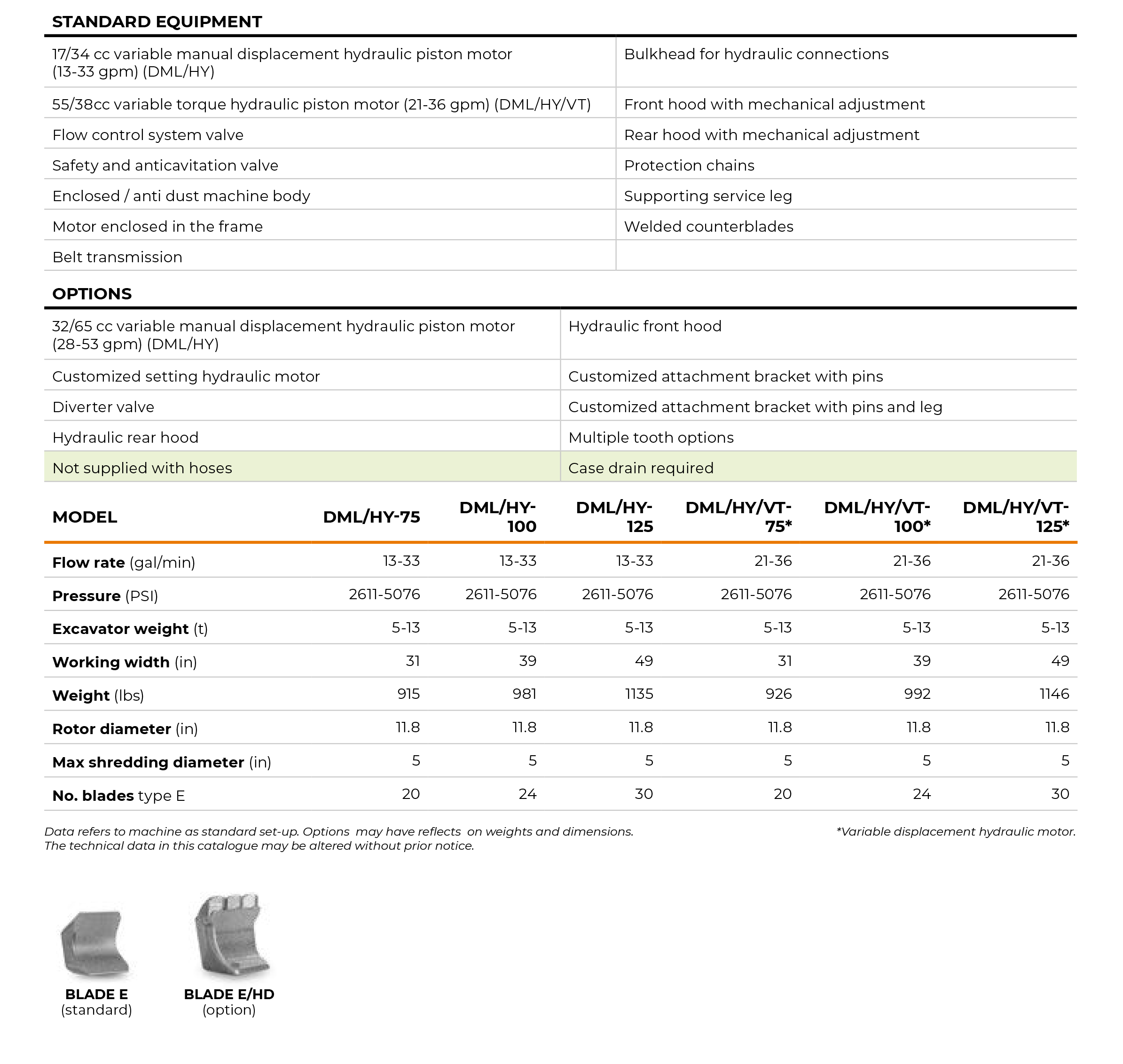 The DML/HY is the small, most versatile fixed hammer excavator mulcher on the market.
