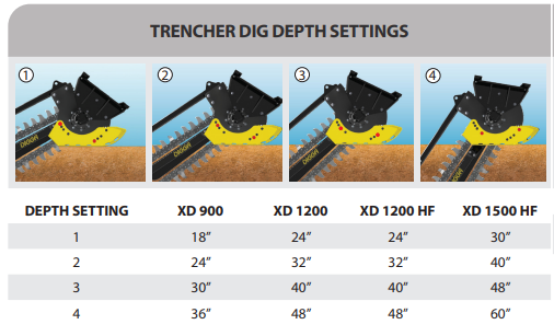 The task of digging a trench has been transformed since the trencher attachment. Trenchers make digging trenches much faster and more efficient than before. A chain feeds the dirt up the boom and the spoil is piled neatly to the side of the trench by the auger.