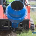 The auger mixing bowl cradle holds the drive up at a 45 degree angle to allow you to fill the mixer bowl and then use the machine to tip out the cement when ready to pour.